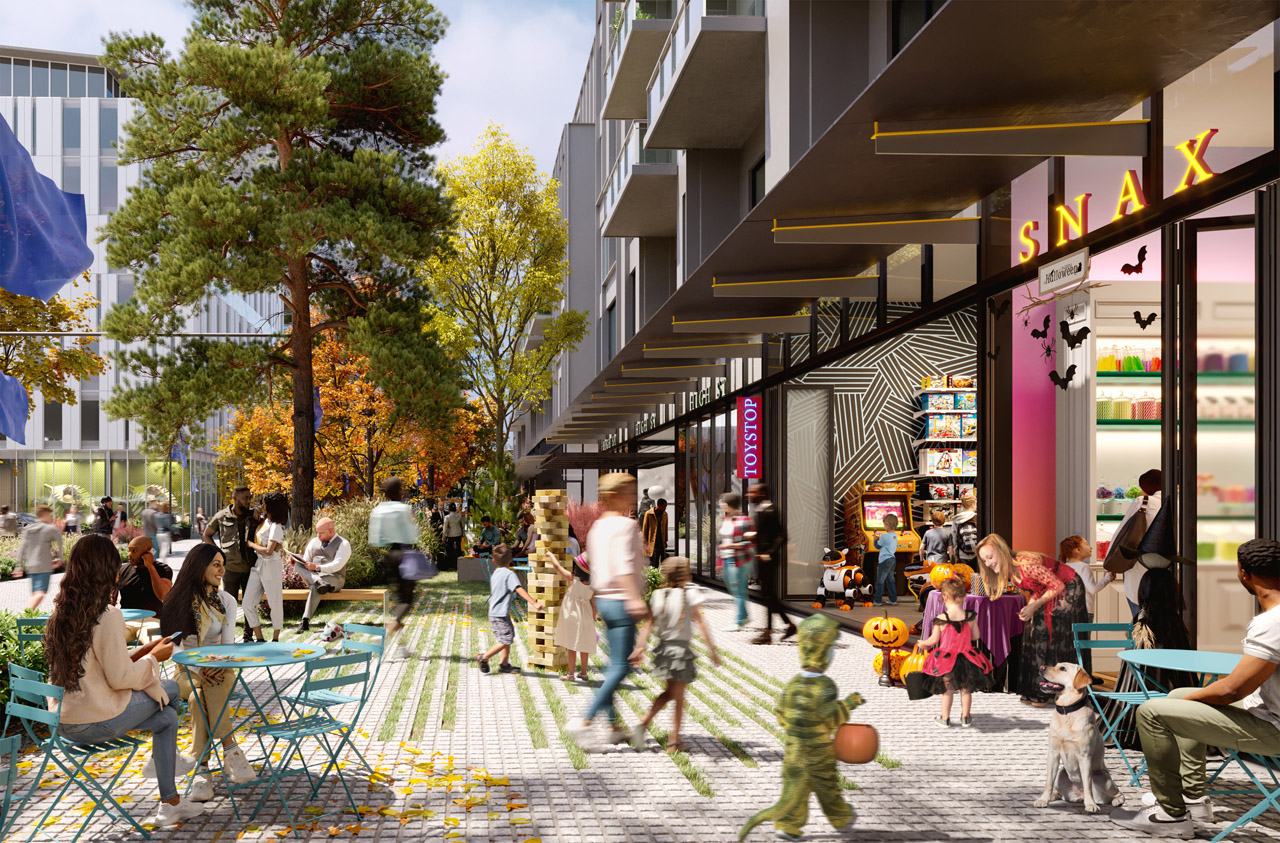 Approximately 300,000 square feet of new retail shops, services, and community amenities will cater to the everyday needs of local residents and workers alike including access to food, daycares, restaurants, professional services and more.