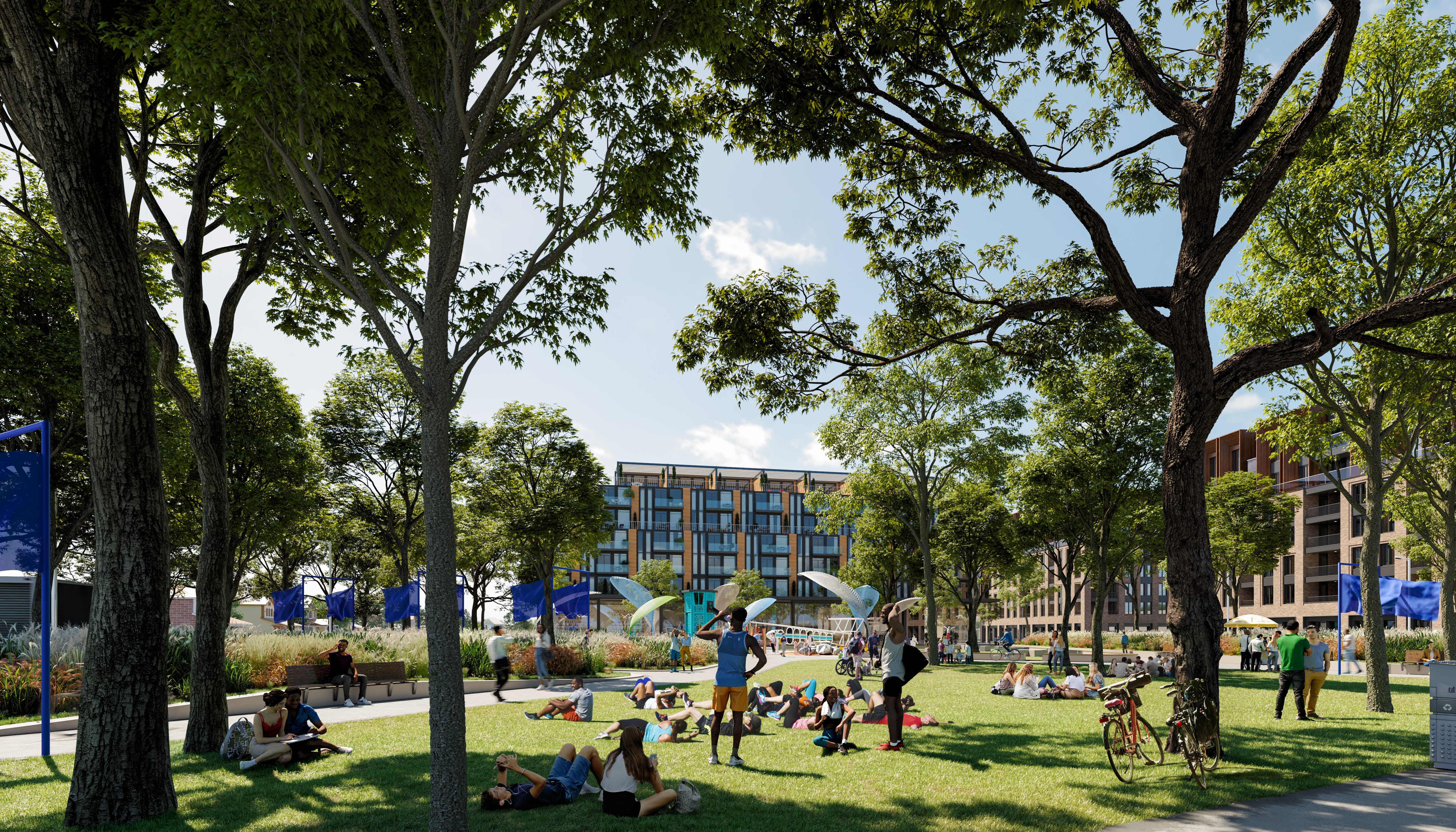 A local neighbourhood park with playgrounds, open fields, and greenery that will bring families and people of all ages and abilities together to relax, play, and enjoy. The park will also play a vital role in managing stormwater through green infrastructure.