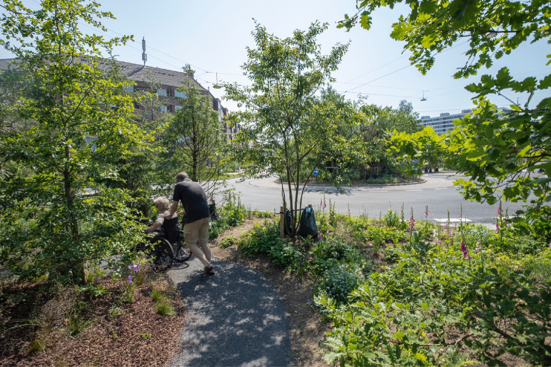 The Hangar District implements the Framework Plan’s vision to combine and integrate the natural and built environments. The public realm – made up of parks, open spaces and streets – will feature green infrastructure, support biodiversity, improve access to nature, and contribute to microclimate comfort.