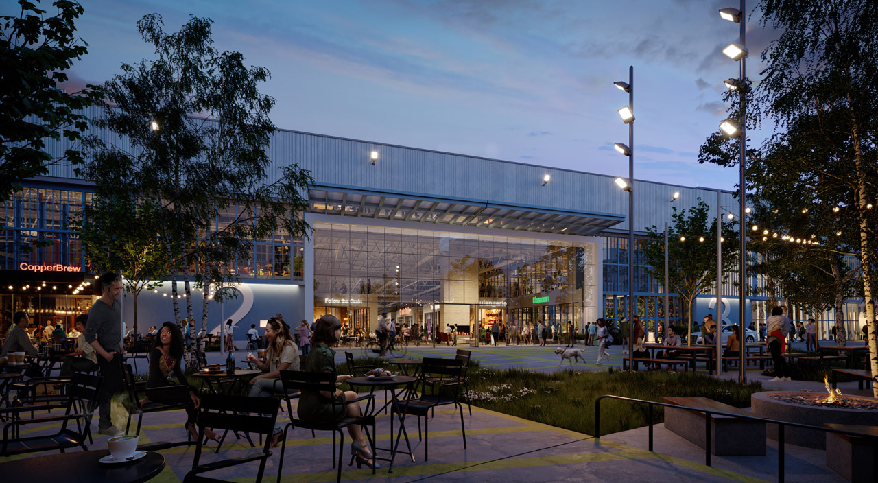 The Atrium is a weather-protected, publicly accessible marketplace inside the hangars. The vision is to create a mix of uses and spaces, bringing life to the hangars year round and providing a new retail destination for the community.